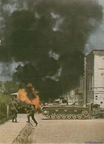 Житомир, горят советские грузовики